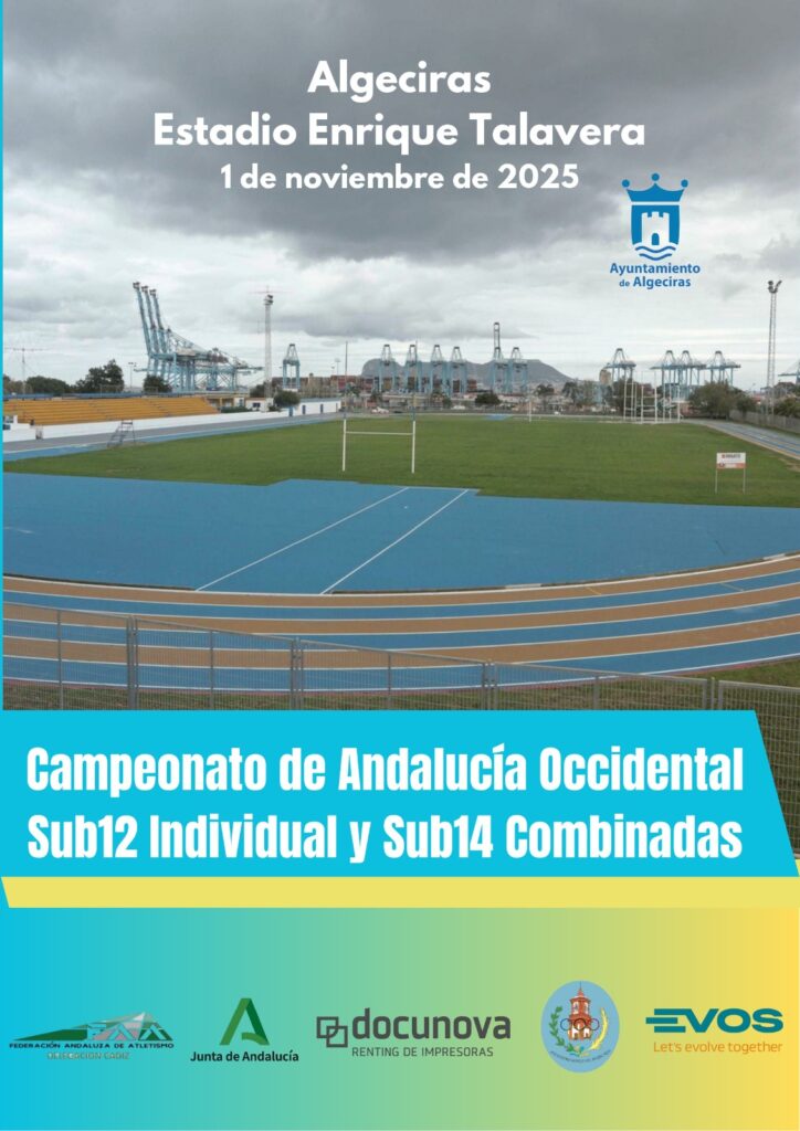 El teniente de alcalde delegado de Deportes del Ayuntamiento de Algeciras, Jorge Juliá Aguilera, ha presentado el cartel del Campeonato de Andalucía Occidental de atletismo Sub-12 (individual) y Sub-14 (combinadas) que se celebrará el próximo sábado 1 de noviembre en las pistas del Estadio ‘Enrique Talavera’. Junto al edil han estado presentes Juan Fernández Salado en representación de la Federación Andaluza de Atletismo; y José Ramón Márquez, presidente del Club de Atletismo Bahía de Algeciras.