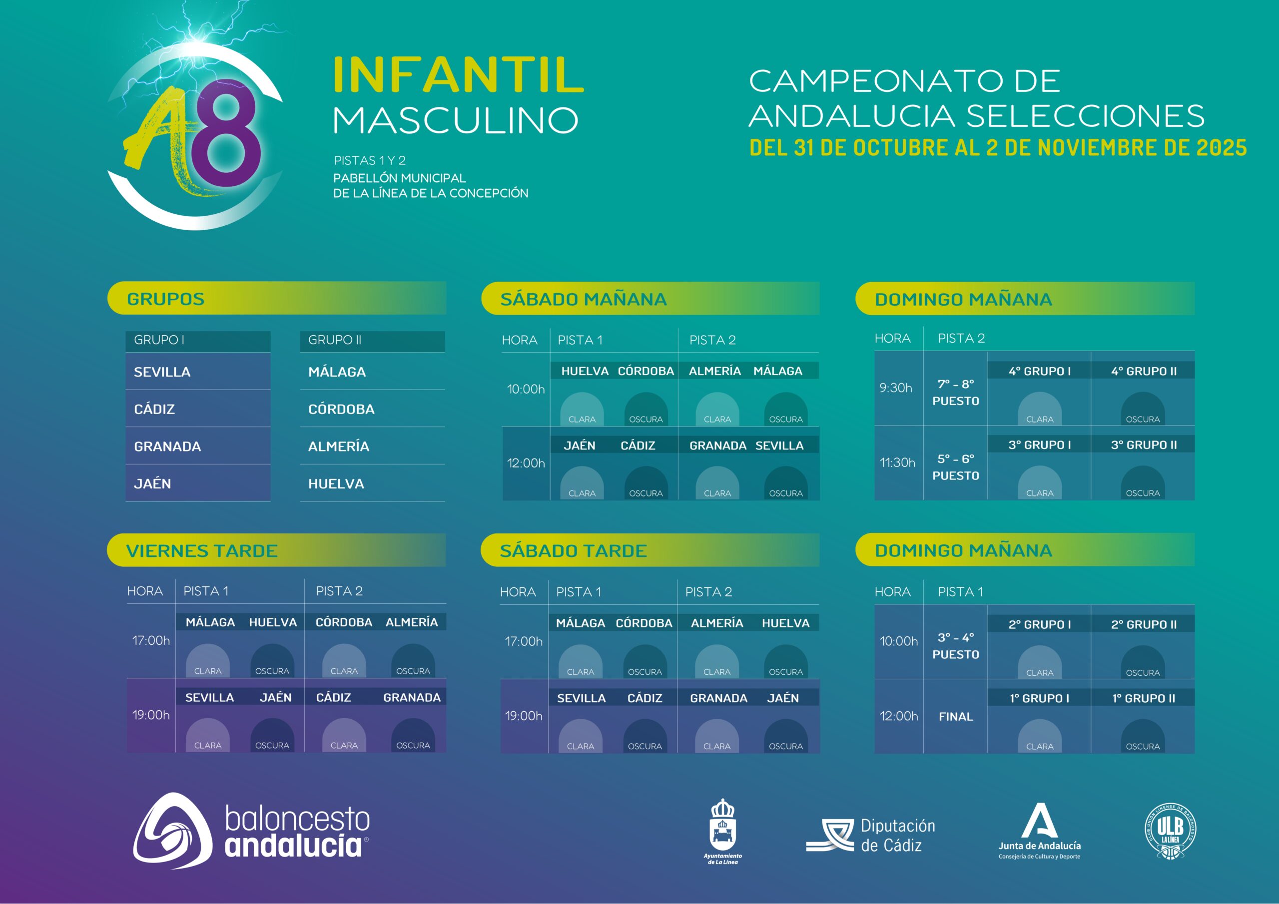 La Federación Andaluza de Baloncesto ha dado a conocer en el día de hoy el calendario del Campeonato de Andalucía de categoría infantil masculino que va a tener lugar este fin de semana en La Línea de la Concepción.