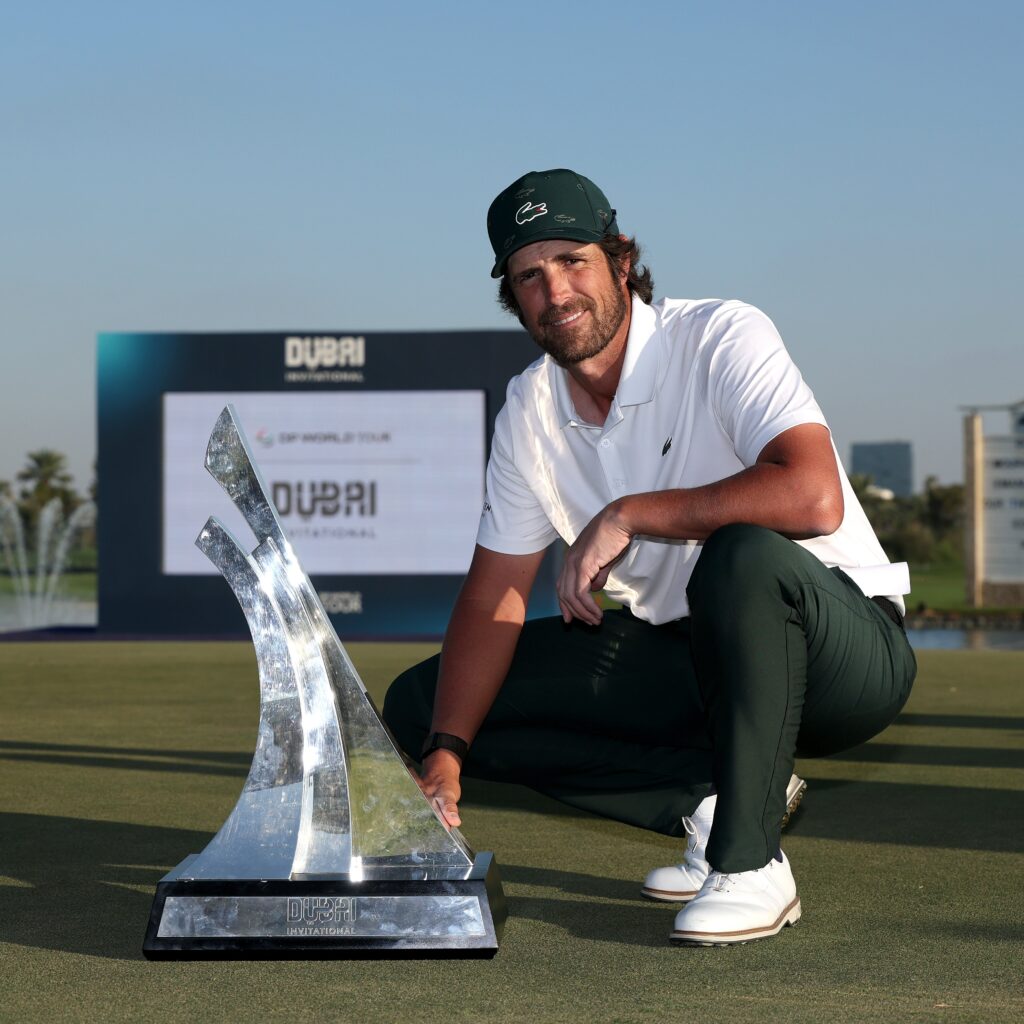 Nacho Elvira posa con el trofeo ganado en Dubai/FOTO: DP World Tour