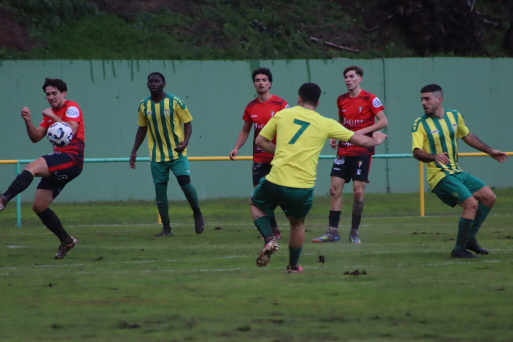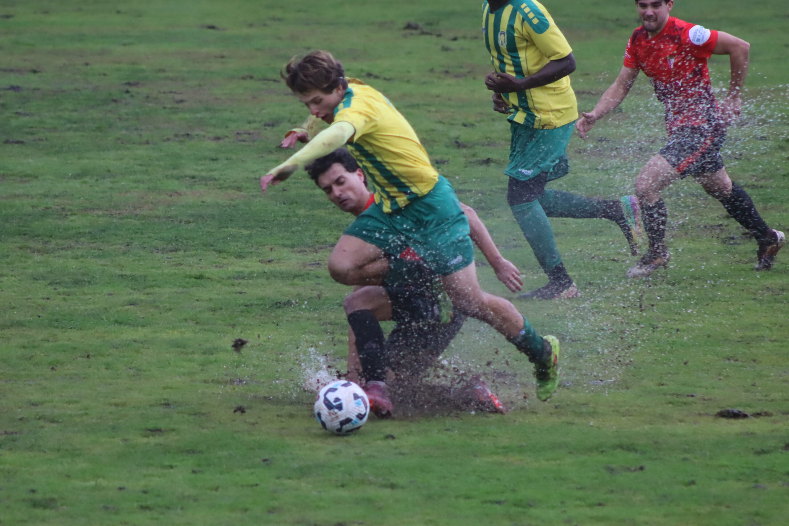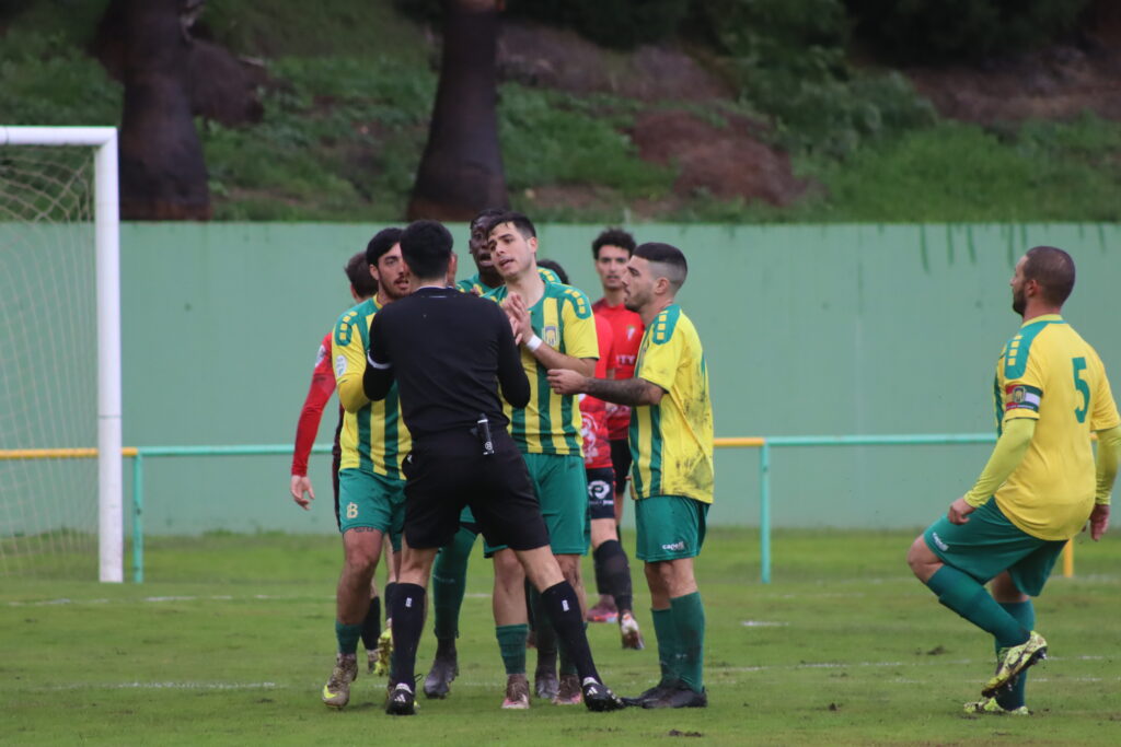 Un partido disputado bajo la lluvia y sobre un campo encharcado y embarrado, con dos lesionados en los forasteros a la media hora de juego… y con polémica.