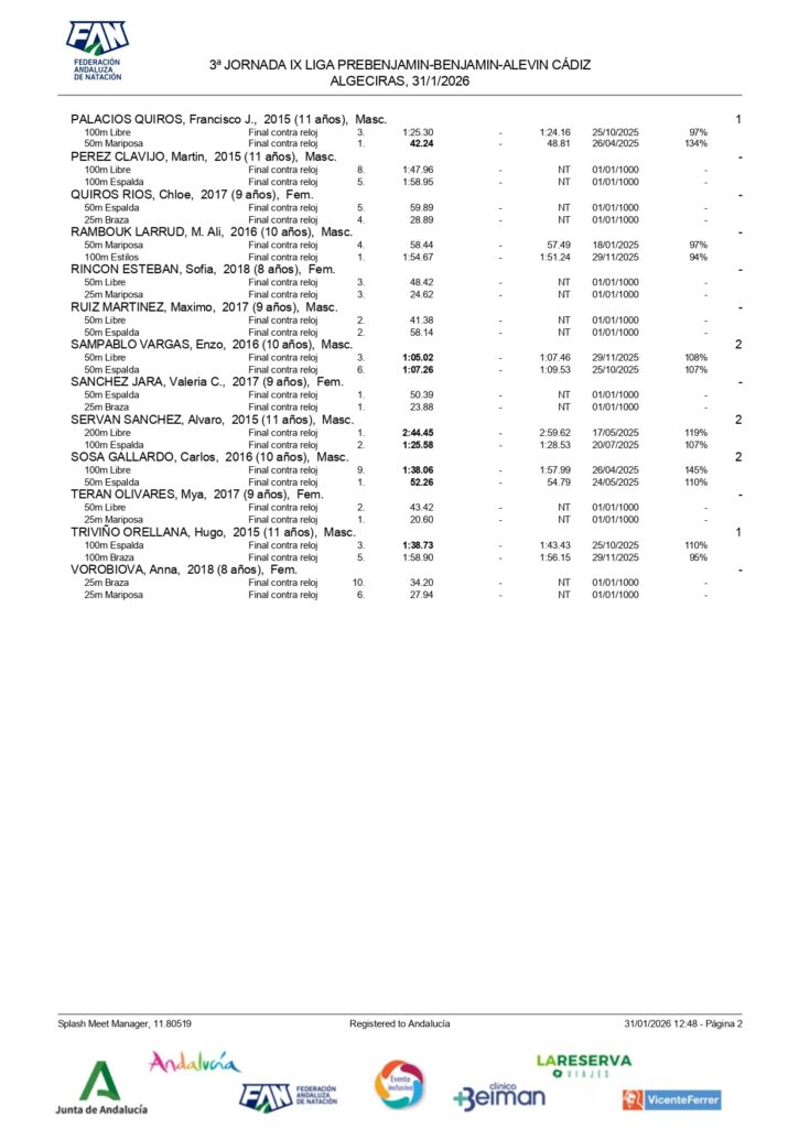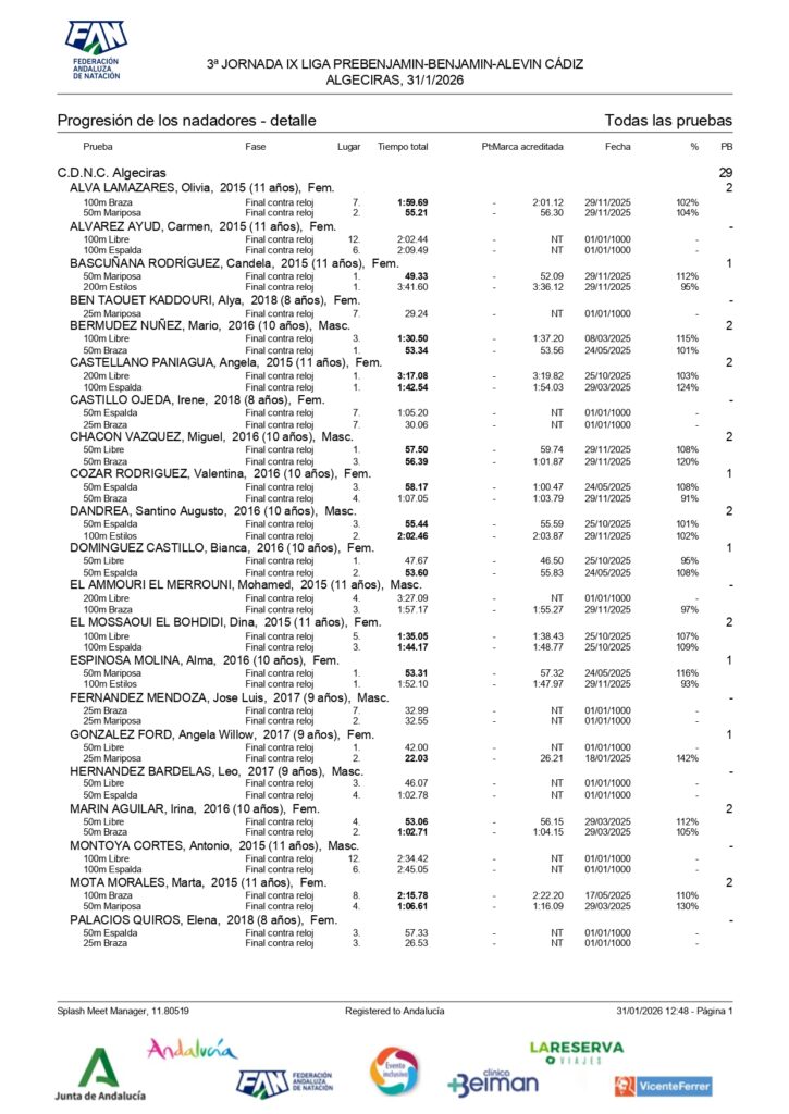 El Club Deportivo Natación Ciudad de Algeciras ha ejercido de anfitrión de la tercera jornada de la IX Liga Prebenjamín-Benjamín-Alevín que ha tenido lugar en la piscina local, donde los sus jóvenes nadadores han conseguido 29 mejoras de tiempo, con nada menos que diez dobletes. Aunque las posiciones en este tipo de pruebas no tiene premio en cuanto a medallas, los algecireños han cosechado nada menos que 17 primeros puestos.
