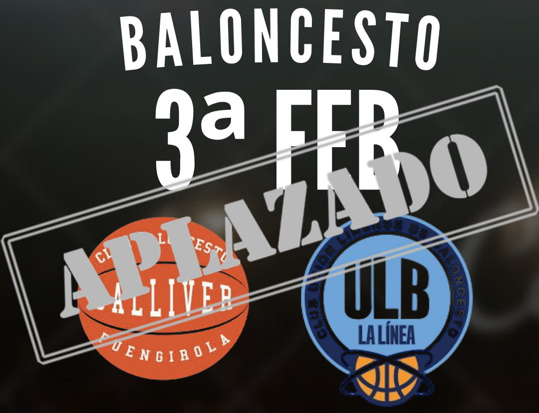 La Federación Española de Baloncesto (FEB) ha anunciado el aplazamiento del encuentro entre el Club Baloncesto Salliver Fuengirola Higuerón Hotel y la Unión Linense de Baloncesto, correspondiente a la 17ª jornada de liga en la Conferencia D-Grupo A que debía disputarse mañana sábado a las 18:00 horas en el Pabellón ‘Juan Gómez Juanito’.