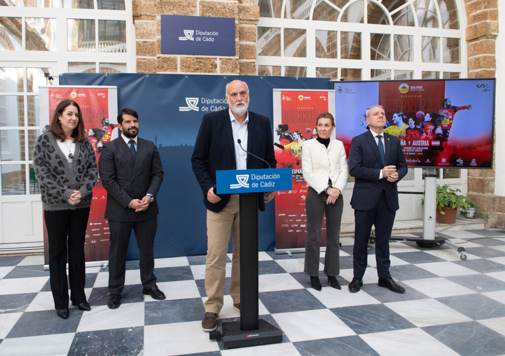 La Diputación Provincial de Cádiz es una de las entidades que colaboran con la Real Federación Española de Balonmano (RFEBM) en la organización de este evento deportivo de primer nivel internacional. Precisamente el Palacio Provincial ha sido el escenario escogido esta mañana de lunes para presentar la cita, en un acto que ha contado con la participación del vicepresidente segundo y responsable de Deportes del ente provincial, el linense Francisco Javier Vidal Pérez; la delegada territorial de Turismo, Cultura y Deporte de la Junta de Andalucía en Cádiz, Tania Barcelona Lozano; el concejal de Deportes del Ayuntamiento de Algeciras, Jorge Juliá Aguilera; y el presidente de la RFEBM, Francisco Blázquez García, estando también presente la diputada provincial y teniente de alcalde del Consistorio algecireño, Paula Conesa Barón.
