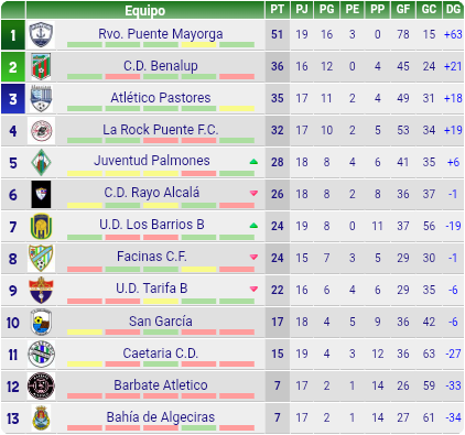 El Recreativo Puente Mayorga ha goleado (0-5) al Recreativo Bahía de Algeciras en partido pendiente de la 18ª jornada de liga en el Grupo I de la Tercera Andaluza.
