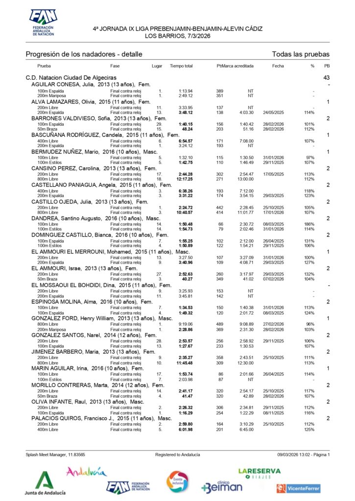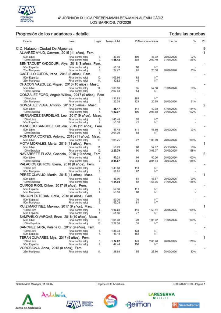 El Club Natación Ciudad de Algeciras ha estado presente en la 4ª jornada de la IX Liga Prebenjamín-Benjamín-Alevín que ha tenido lugar en la piscina de Los Barrios.