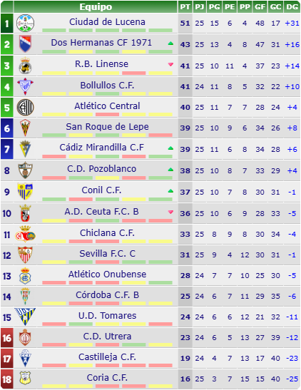 - PARTIDO: Real Balompédica Linense (3º, 41 puntos) – Unión Deportiva Tomares (18º, 24 puntos)