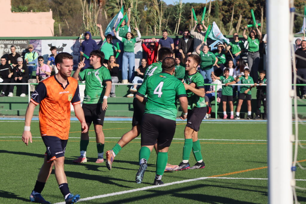 Los jugadores del Juventud de Palmones festejan uno de los goles al filial de la UD Los Barrios/FOTO: Axel S.C.
