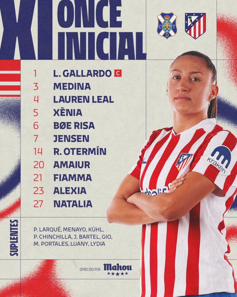 La de Taraguilla ha hecho un espectacular primer tiempo, cerrando todas las acometidas rojiblancas. De hecho, la primera ocasión de las visitantes ha sido en el minuto 39, con un remate de Synne Jensen bastante por encima del larguero. La réplica tinerfeña, un centro-chut de Paulina Gramaglia desde la derecha al que ha llegado antes la central Xènia Pérez que las delanteras. Luego, antes del descanso, la forastera Natalia Ramos ha lanzado por encima del travesaño una falta directa.