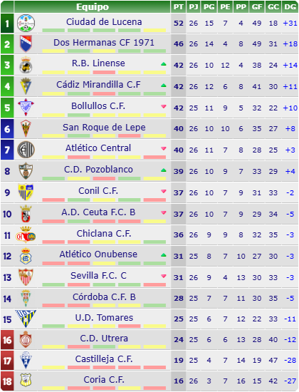 - PARTIDO: Sevilla FC C (13º, 31 puntos) – Real Balompédica Linense (3º, 42 puntos)