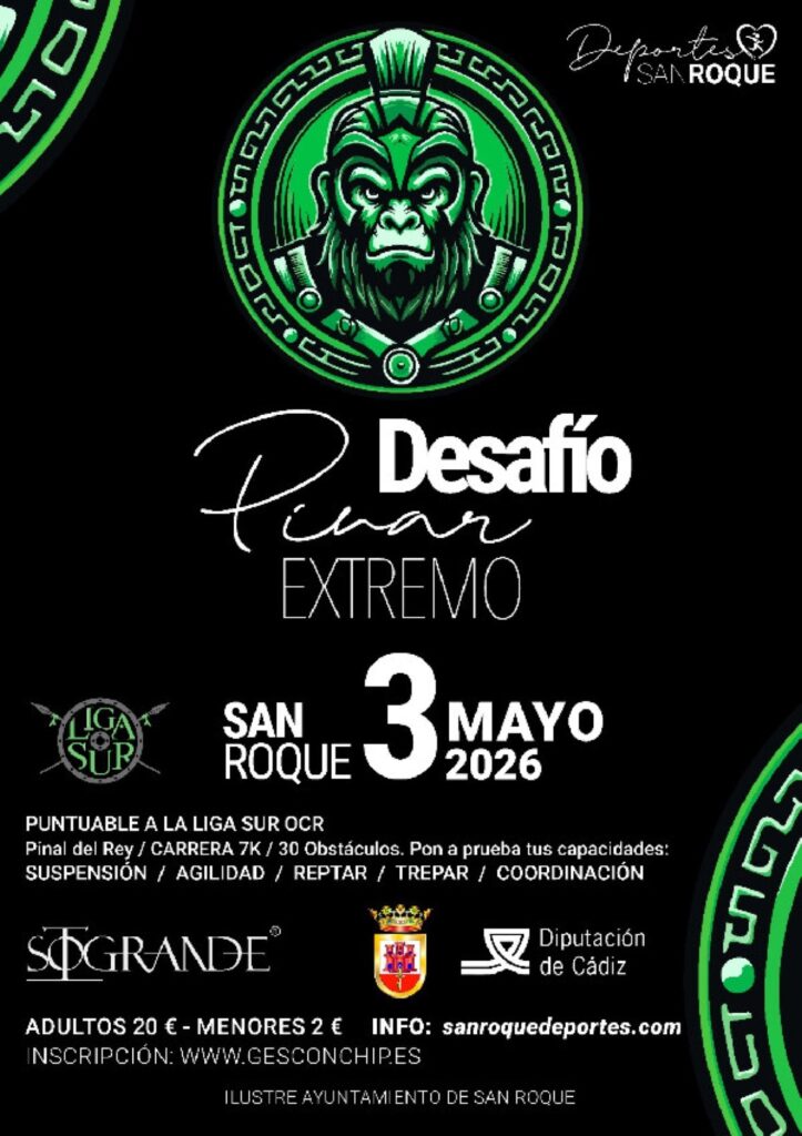 El próximo domingo, 3 de mayo, se celebrará la primera de las pruebas del Circuito ‘San Roque Ciudad de los Desafíos 2026’. Se trata del III Desafío ‘Pinar Extremo’, cuya inscripción ya puede realizarse en la plataforma web Gesconchip, Con un recorrido de 7 kilómetros, los participantes se enfrentarán a 30 obstáculos donde deberán suspenderse, reptar, trepar y mostrar su agilidad y coordinación