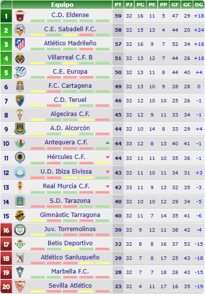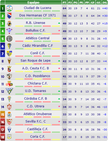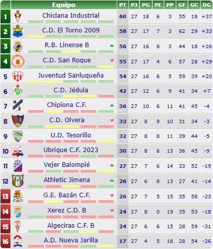 - PARTIDO: Real Balompédica Linense B (3º, 56 puntos) – Chiclana Industrial Club de Fútbol (1º, 60)