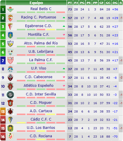 - Nota: El CD Rayo Sanluqueño ya es campeón y ha conseguido el ascenso a División de Honor. El Puerto Real CF ha descendido a Segunda Andaluza.