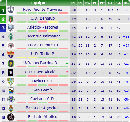 - PARTIDO: Unión Deportiva Tarifa B (6º, 33 puntos) – Club Deportivo La Rock Puente (4º, 41 puntos)