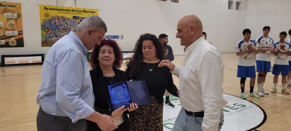 Por un lado, a la figura del recordado y añorado periodista, Enrique Tadeo. Su esposa Chelo y su hija Ana han recogido un presente por parte de la directiva como prueba de agradecimiento por todo el apoyo al club, teniendo una sección semanal sólo para el balonmano.