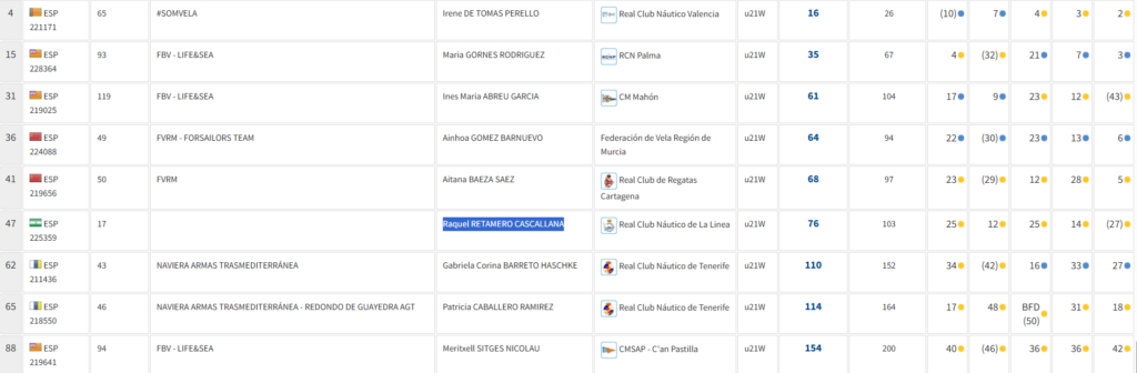Raquel Retamero (RCN La Línea) comienza en la cuarta posición entre las féminas sub-21 el Nacional de ILCA 6