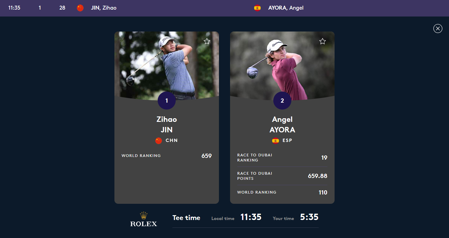 Líder es ahora el donostiarra Adrián Otaegui, aunque juega con bandera de los Emiratos Árabes desde finales de 2024, que ha comenzado la jornada el 13º empatado con Ayora, pero una vuelta de -9 (eagle en el 4; birdie en el 1, 7, 8, 9, 10, 11, 16 y 18; y bogey en el 5) para un total de -16, aventajando en uno al austriaco Bernd Wiesberger (de Viena); mientras que tiene cuatro de margen sobre el sudafricano Shaun Norris (Johannesburgo).