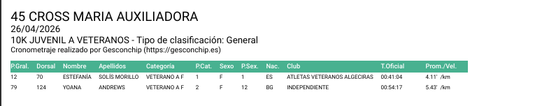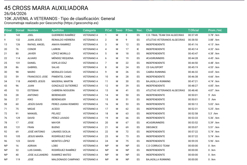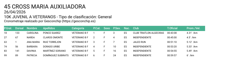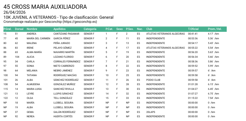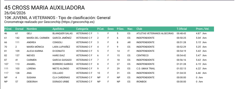 CLASIFICACIONES PRUEBA 10 KILÓMETROS