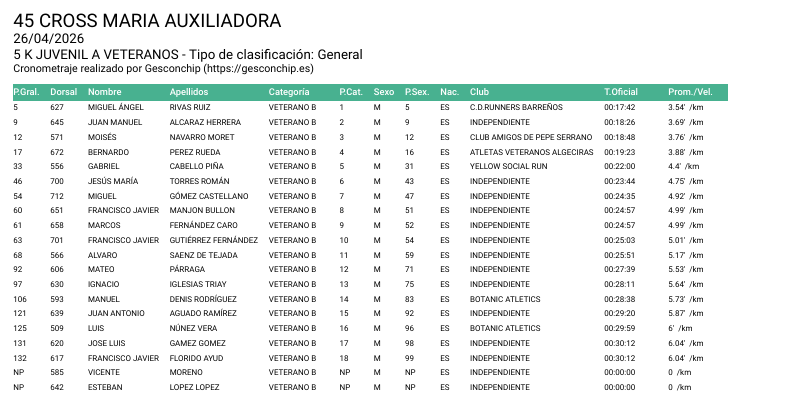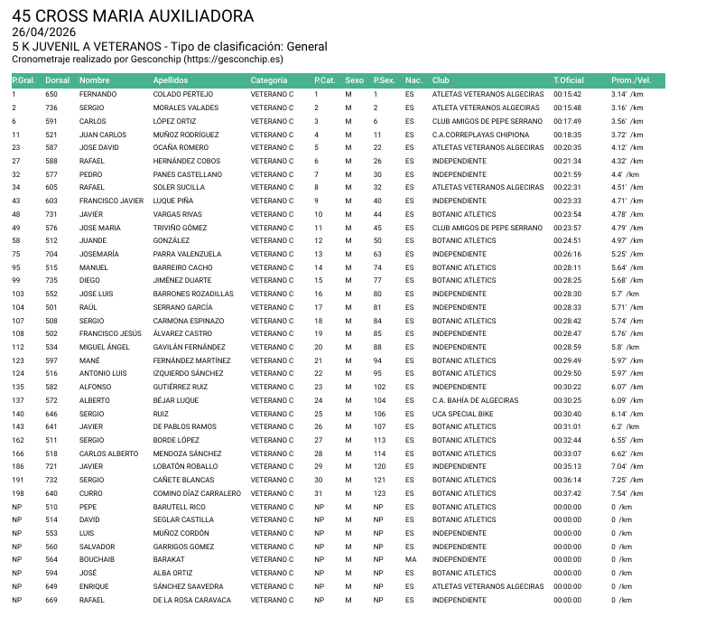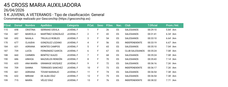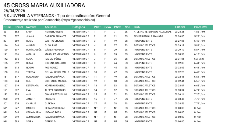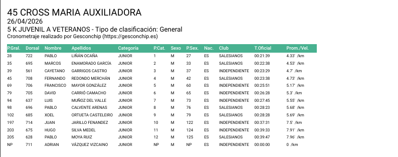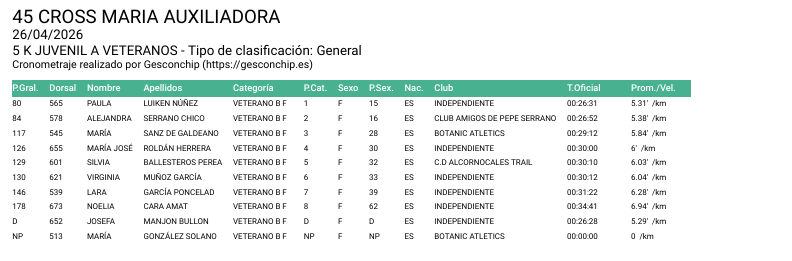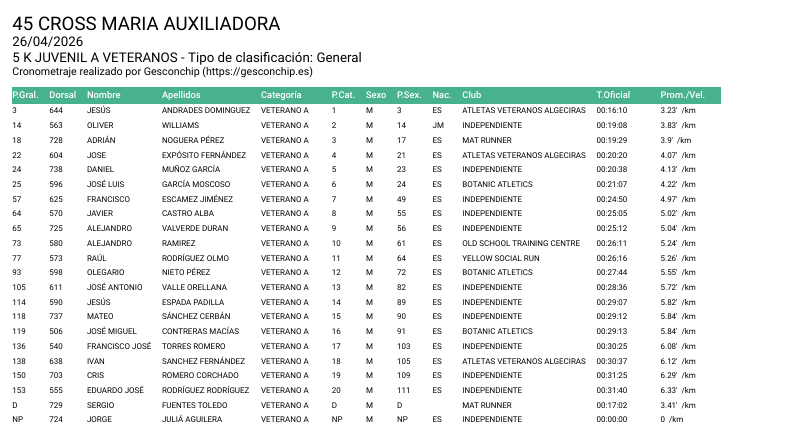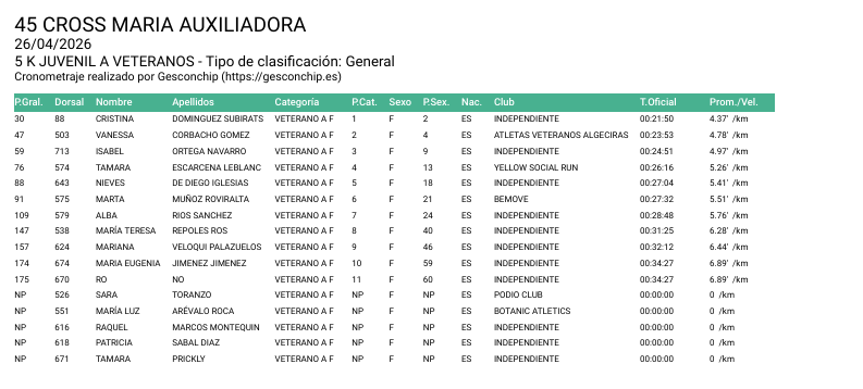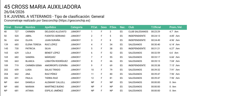 CLASIFICACIONES PRUEBA 5 KILÓMETROS